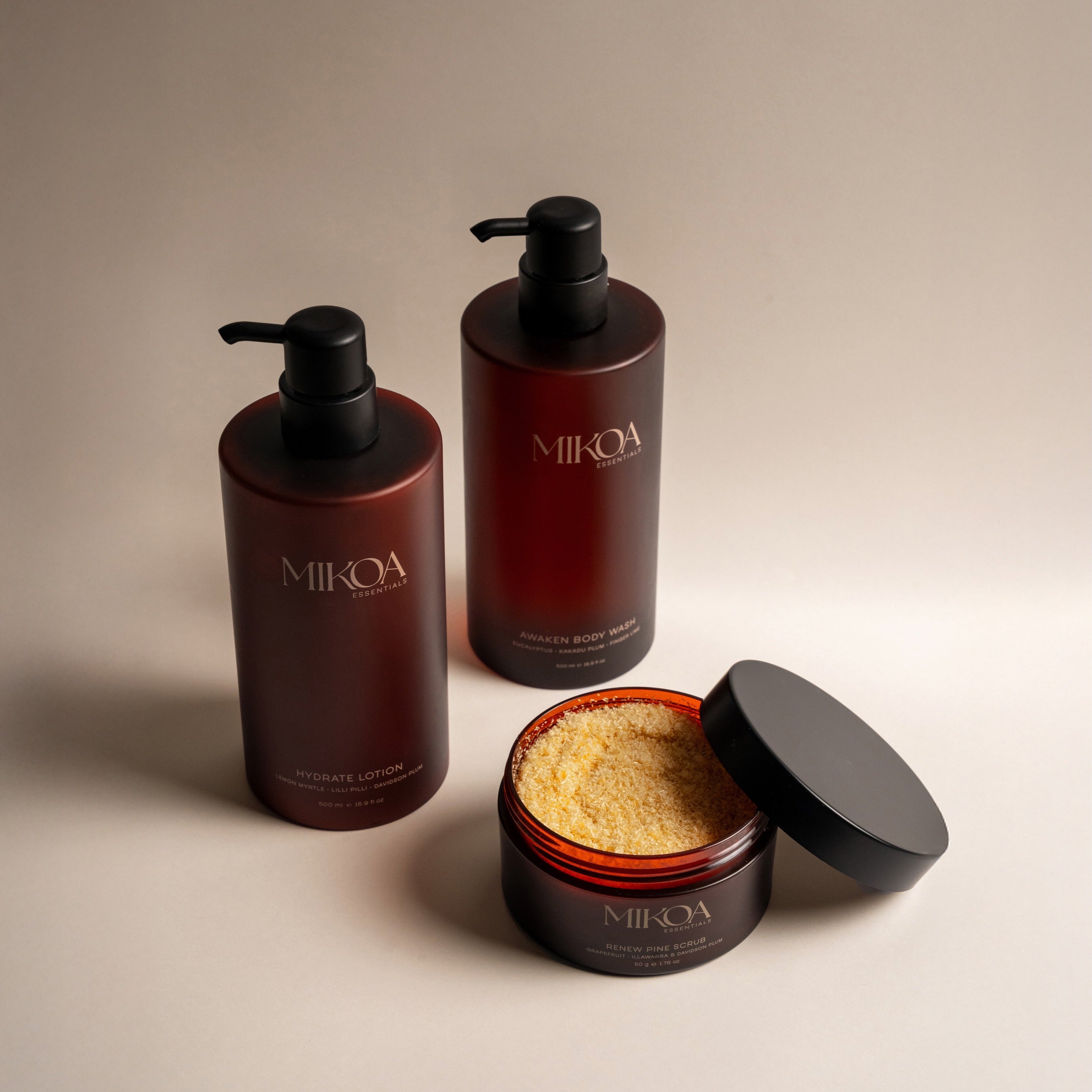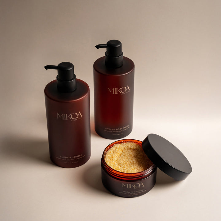 A three-step ritual for radiant skin. Smooth, cleanse, and hydrate with lightweight care - crafted to restore balance and renewed softness.